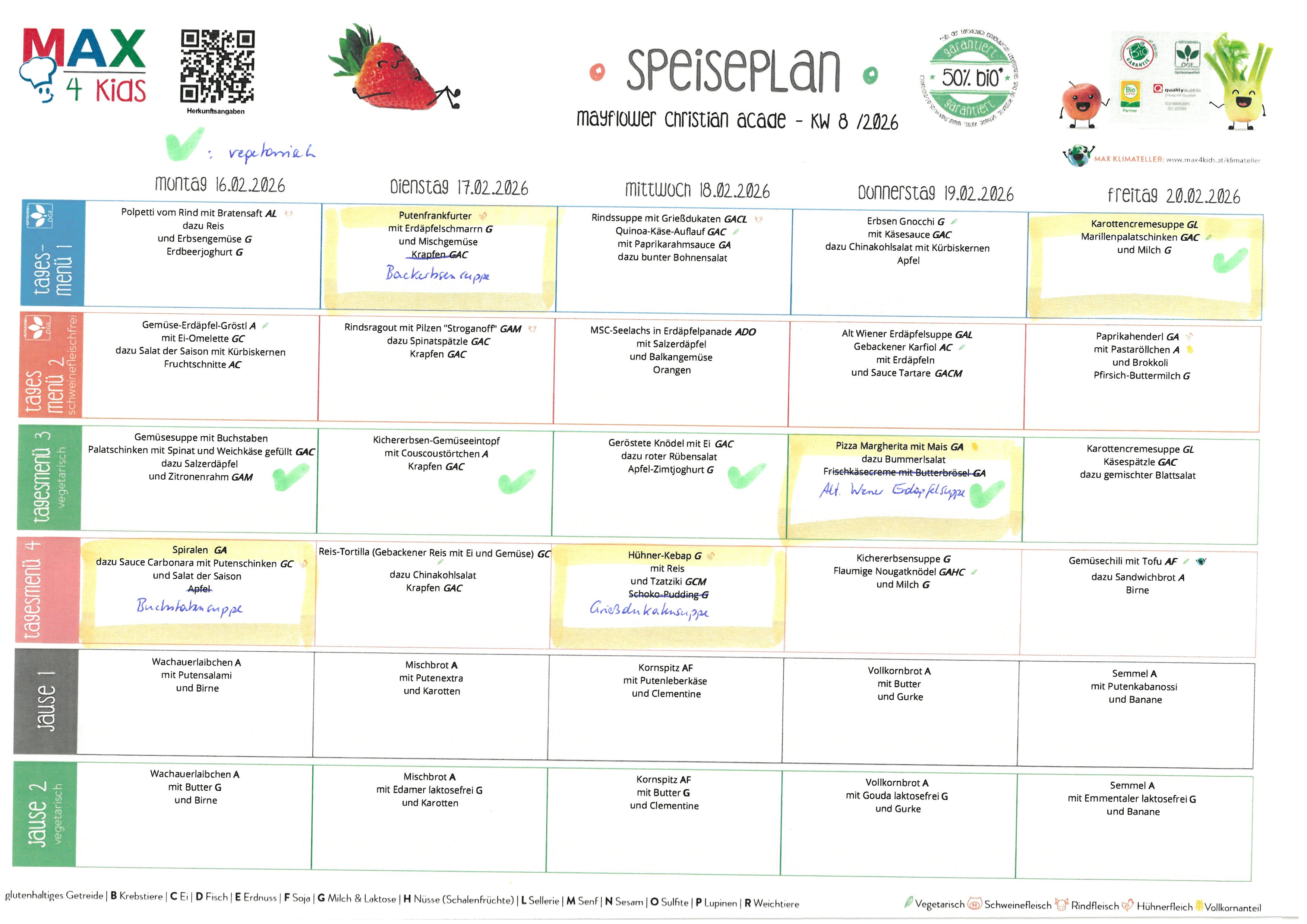 Wir freuen uns über Ihre Anregungen und Vorschläge in Sachen Ernährung, weil wir diesen wichtigen Aspekt unserer Dienstleistungen weiter verbessern möchten. --> office(at)mayflower-christian-academy.at